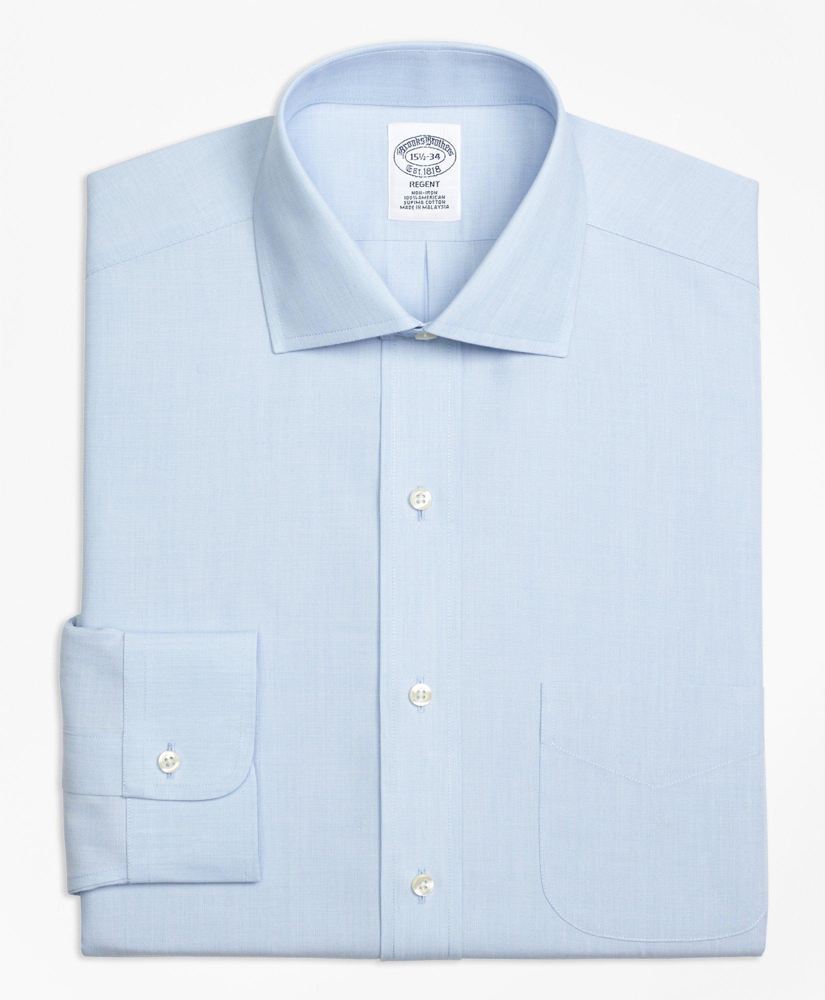 Brooks Brothers Men's Regent Regular-Fit Dress Shirt, Non-Iron Button-Down Collar | Blue | Size 14½ 33
